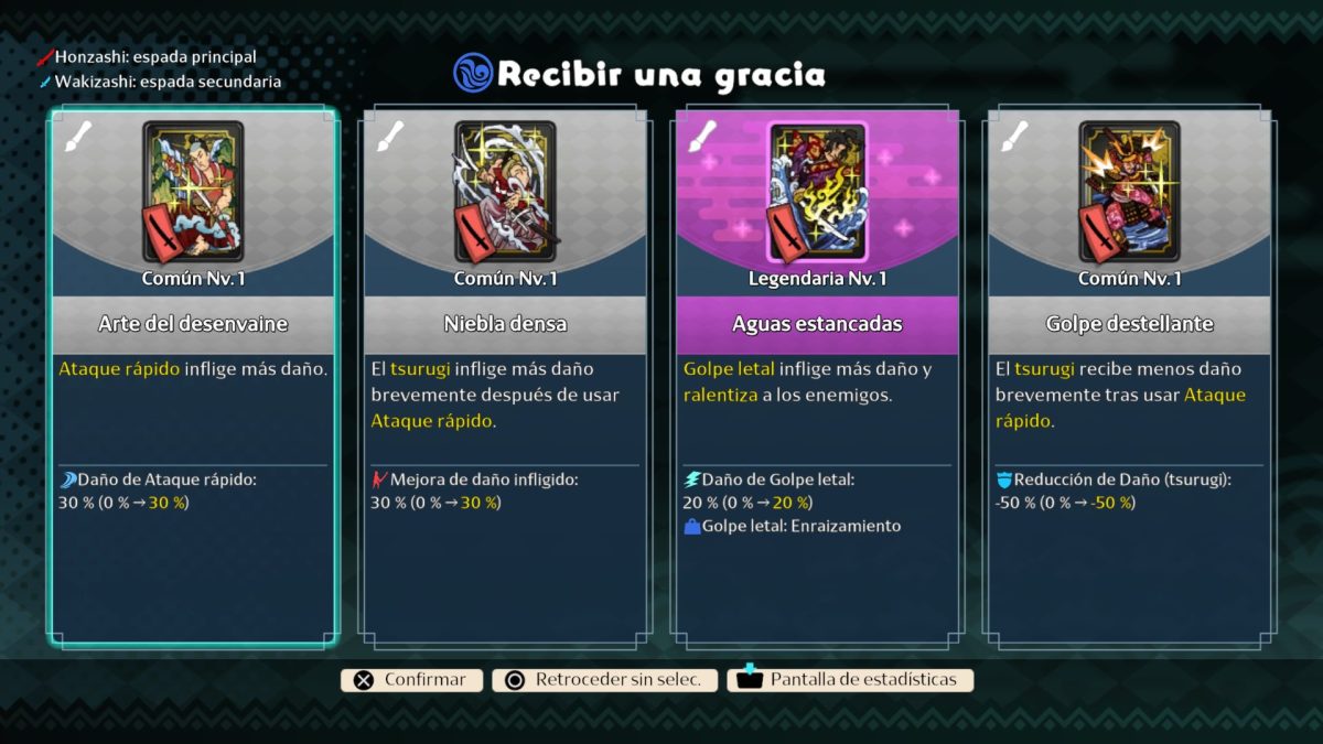 Por último, hablemos un poco de lo que va definiendo a lo largo de las runs cómo enfrentarás a cada una. Al limpiar cada área podrás tener recompensas de diferente tipo. Las más importantes son las gracias. Estas aumentan estadísticas, o agregan efecto en tus habilidades y acciones. Por ejemplo, luego de esquivar, recibas un escudo que bloquea daño.