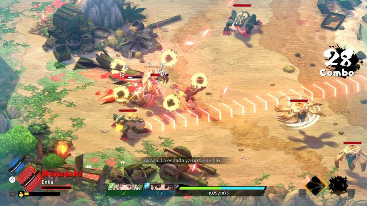El mismo cambio de espada se hace a través de un ataque rápido, que funciona como un dash rápido que hace daño. La idea es que hay que hacer constantemente daño en el título.